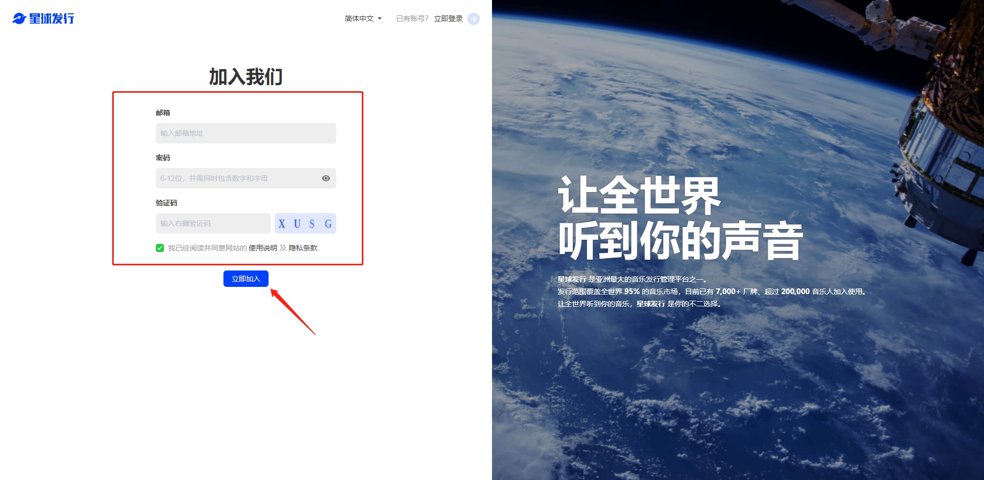 1、登录星球发行的官方网站:https://star.kanjian.com/ ,点击页面右上角的【注册】,便可以使用个人邮箱注册账号。